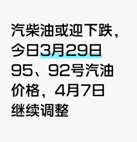 多家权威行业监测机构数据显示,截至3月28日,本轮计价周期内国际一揽子原油综合变化率为负值,对应的汽柴油下调幅度在每吨80-105元区间。换算成升价,92号汽油预计每升下调0.07-0.10元,95号汽油预计每升下调0.08-0.11元,0号柴油预计每升下调0.07-0.10元。