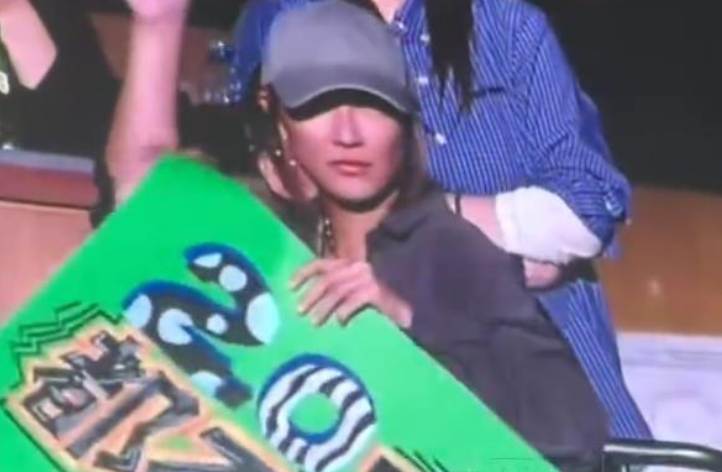 4月19日晚,上海梅赛德斯-奔驰文化中心。当舞台大屏的镜头扫过观众席,捕捉到高举着两块手牌的应采儿时,正在台上演唱的陈小春,当场转身擦起了眼泪。