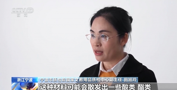 宁波市质检院国家文教用品质检中心副主任 田旭玲:在加热的过程中,这种材料可能会散发出一些酸类、酯类、不饱和烃类,或者是甲醛、乙醛和一氧化碳等物质,这些物质如果是在密闭空间里,长时间也会对消费者造成一定的危害。
