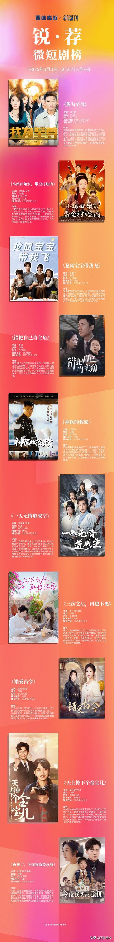 本次「锐·荐微短剧榜」周榜第三期(2025年3月3日--2025年3月9日)