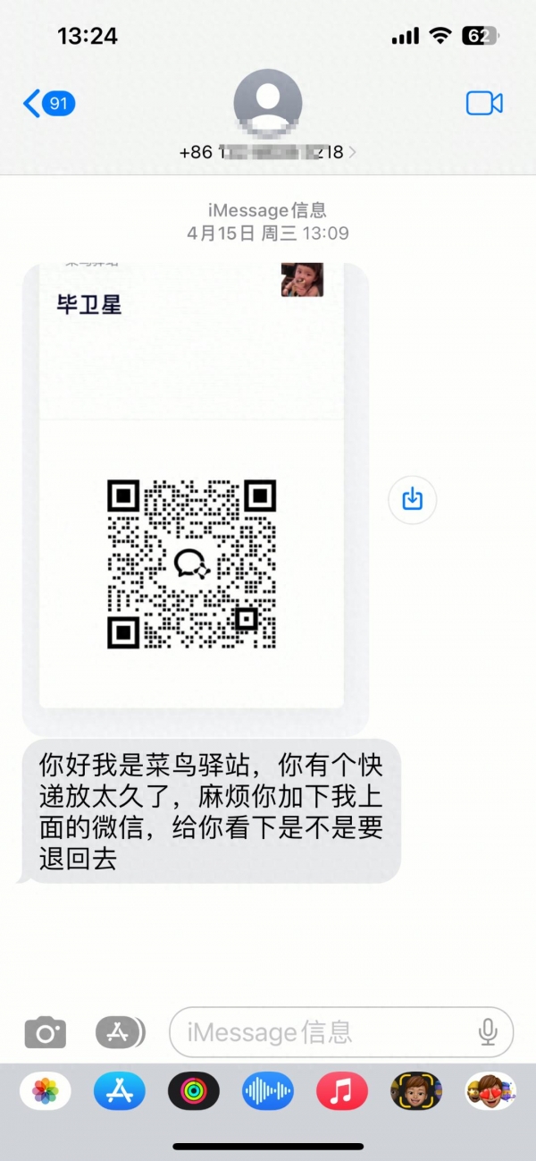 对方自称是菜鸟驿站的工作人员,说赵女士有个快递放了很久,"麻烦你加下我的微信,给你看一下是不是要退回去。"
