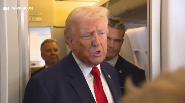 当地时间3月7日,特朗普在"空军一号"回答媒体提问。 视频截图