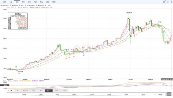 2026年,黄金市场上演了大起大落的"过山车"行情--伦敦黄金现货一度飙升到5598美元/盎司的高位,又在3月遭遇断崖式暴跌,单日最大跌幅超8%,最低探至约4099美元/盎司,已经累计回撤近30%。随后一度反弹,重回4500美元/盎司以上。追着黄金牛市的尾巴入场,又经历了黄金猴市的起伏动荡,不少炒金客完成了一次集体的理财成人礼--市场有波动,投资要理性,单押All-in甚至拉满杠杆的冒进投资,大概率是在用自己的积蓄献祭周期波动。