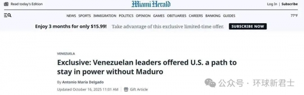 10月中旬,委内瑞拉总统马杜罗通过卡塔尔调解员向美国递交了两份"有条件投降"方案,提出以个人下台换取政权平稳过渡,但均遭特朗普政府断然拒绝。