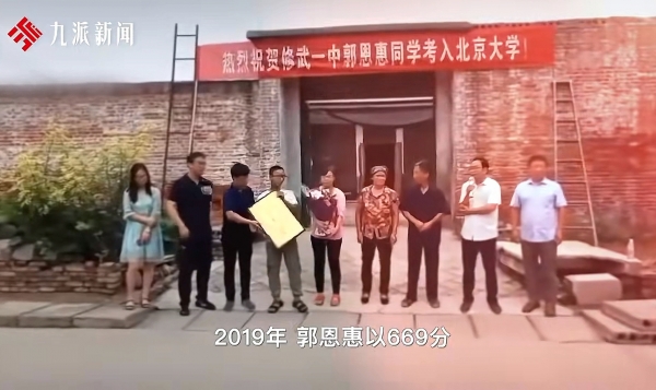 值得关注的是,郭恩惠的身份不简单,他是当年从北大退学考清华的新闻当事人,2019年以669分考入北京大学,在当地轰动一时。