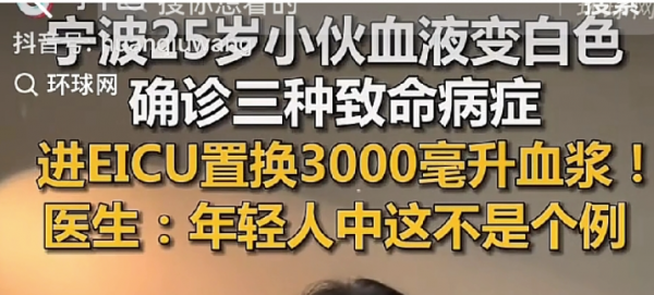 你知道吗?在我们的日常生活中,饮食和生活习惯与健康息息相关。最近,宁波一位25岁的小伙子因不健康的生活方式,血液竟然变成了乳白色,医生称之为"牛奶血"。这并不是科幻电影的情节,而是一个真实的案例,给年轻人敲响了警钟。