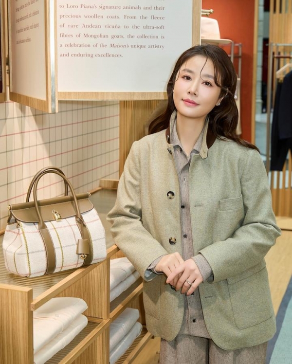 这款西装外套与常规款略有不同,这点不仅体现在门襟设计,领口也尤为抢眼。林心如将领子立起来,不是常见的大翻领,优点是让脖子看着更长了。有的西装门襟虽然是扣子设计,但只有一两粒,而且出现在腰部位置;身上这款扣子从领口开始,共有四颗,扣上后让穿着者看着更干练,尽显正式感。