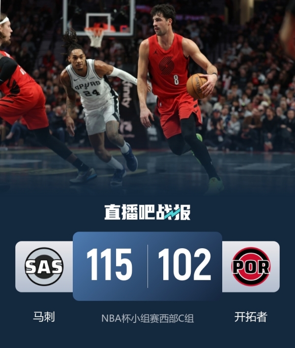 直播吧11月27日讯 NBA杯,开拓者今日迎战马刺,前者上场比赛战胜雄鹿,后者则是输给太阳,此役文班亚马、卡尔斯、霍勒迪和亨德森等人缺战,哈珀和夏普复出。