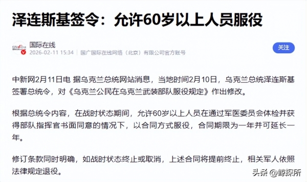 就在2月10号当地时间一早,泽连斯基亲自签下一道总统令,直接打破了乌克兰服役年龄的底线,允许60岁以上的公民。