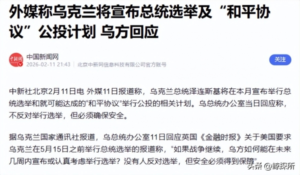 筹划总统选举和和平协议公投,或许要在2月24号也就是俄乌冲突四周年当天,正式宣布这个计划。