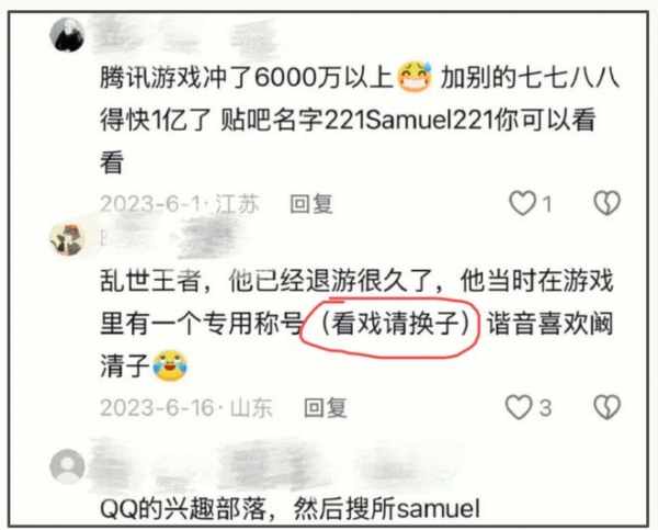 这次曹然高调给阚清子刷互动值,不少网友直呼磕到了。还发现他的另一个账号名叫"看戏请换子",调换下位置谐音正好是"喜欢阚清子"。可以说无时无刻不在暗戳戳的秀恩爱。