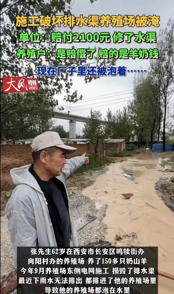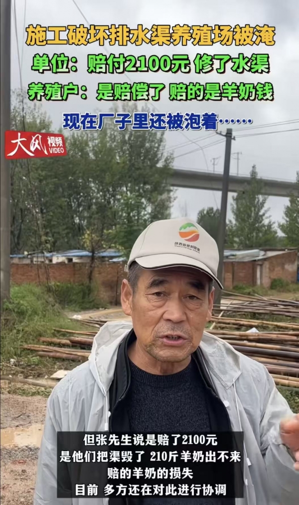 事情发生之后,张先生就向有关部门进行反映,开始索赔了。对此施工单位也表示赔偿了2100元,也把水渠给修了。但是对于这样的赔偿,张先生表示无法接受。因为他认为这2100元应该赔的是羊奶钱。因为自己养殖场被水淹之后,导致自己210斤羊奶无法正常挤出。那自己养殖场被水淹了的损失,这个肯定也得赔偿。