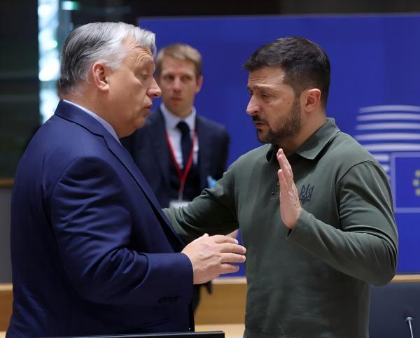 2024年6月27日,匈牙利总理欧尔班和泽连斯基在比利时布鲁塞尔出席欧盟领导人峰会 路透社