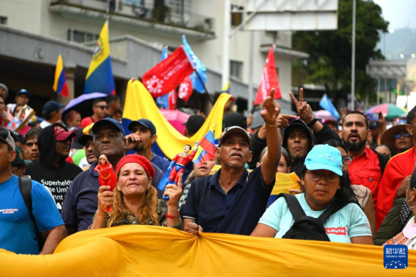 1月7日,民众在委内瑞拉首都加拉加斯参加游行集会,要求美国释放马杜罗夫妇。 图源:新华社
