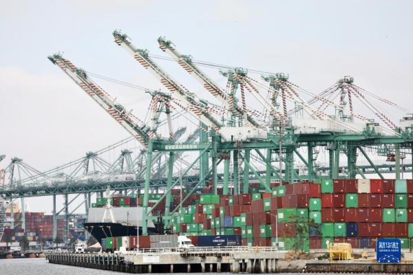 在美国加利福尼亚州洛杉矶港拍摄的堆积成山的集装箱。 资料图:新华社