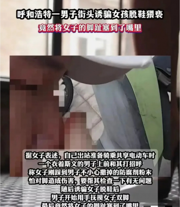这个世界每天总有颠覆三观的事情发生。网传内蒙古呼和浩特一男子光天化日之下将一陌生女子的脚丫子塞到了嘴巴里,算是相当炸裂了。