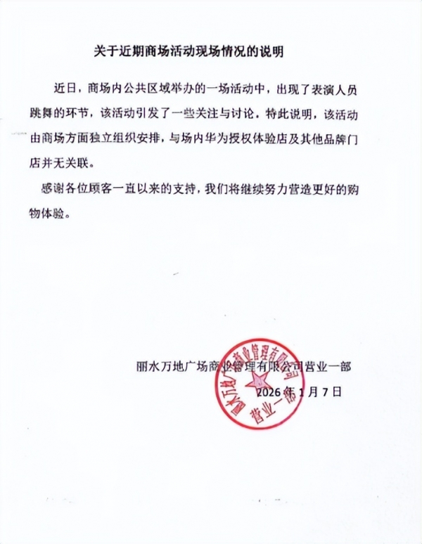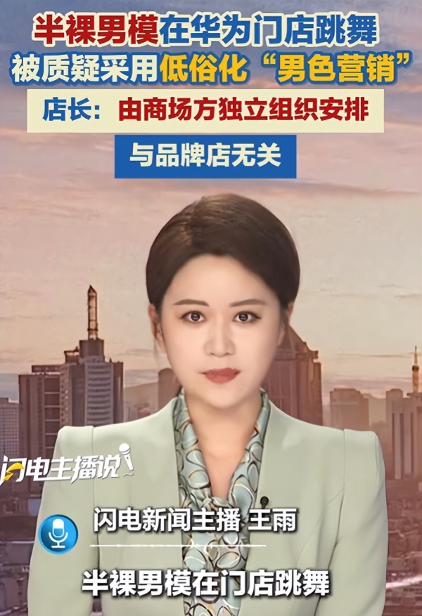 更尴尬的是,视频里这些赤裸上身的男模,在巡场时还走进了商场里的华为授权体验店跳舞,结果好多人以为这是华为店搞的"男色营销"。华为店很快发说明,强调活动是商场自己组织的,跟门店和其他品牌都无关,商场也协助下架了相关视频。