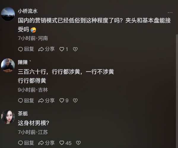另一派则很反感,认为商场是全家大小都会来的公共场所,搞这种半裸走秀,再加上那种略带挑逗的文案,明显就是在打擦边、博眼球。
