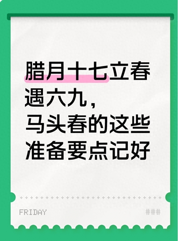 立春的习俗和准备,核心都是顺应春天阳气生发的特点,不用花大钱,提前准备好,既讨个好彩头,又能照顾好身体,而且立春离马年春节只有13天,顺带还能为过年做准备,一举两得。