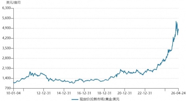 反映在客观数据上,2023年起,在全球央行持续购金、地缘政治风险升级、美联储降息预期强化等因素的影响下,国际金价持续走高,甚至在2025年出现了"史诗级行情",从年初的2646美元每盎司上涨到年底的近4500美元每盎司。