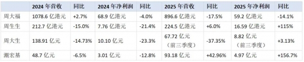 财报显示,2024财年,周大福营收实现1078.6亿港元,同比上升2.7%,与上一年度相比,同比增幅放缓;归母净利润方面也同比下跌4%。周大福解释称,主因高金价抑制叠加门店优化。同期,周生生、周大生、潮宏基等品牌也出现了一定程度的营收下滑,原因也更多受"市场消费情绪影响"。