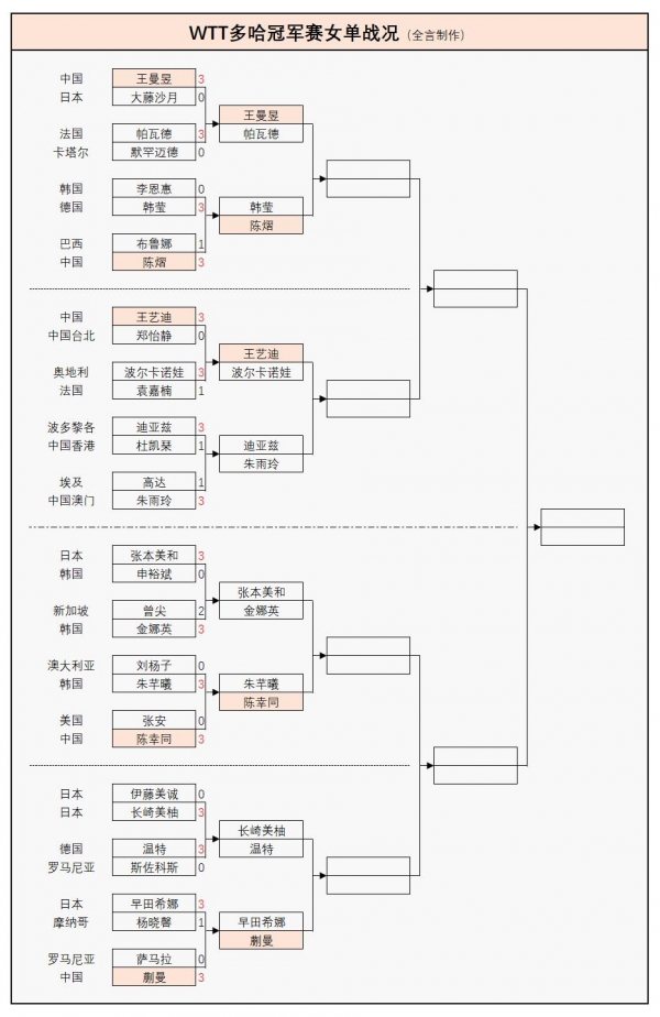 外协会方面,日本两位全国冠军松岛辉空、宇田幸矢之间也会爆发内战,张本美和、户上隼辅将分别迎战韩国选手金娜英、张禹珍,长崎美柚则会与德国怪胶手温特过招;德国两大主力奥恰洛夫、邱党将分别对阵中国台北的林昀儒、法国的小勒布伦;瑞典的莫雷加德将迎接印度黑马塔卡的冲击;中国澳门世界冠军朱雨玲再战去年击败过自己的波多黎各名将迪亚兹。