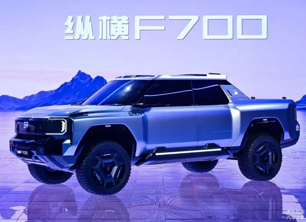 纵横F700预计在今年二季度上市,定位一款硬派越野皮卡,采用鲲鹏超能混动CDM-O,具备智能全地形模式,四座布局,3.5T牵引。