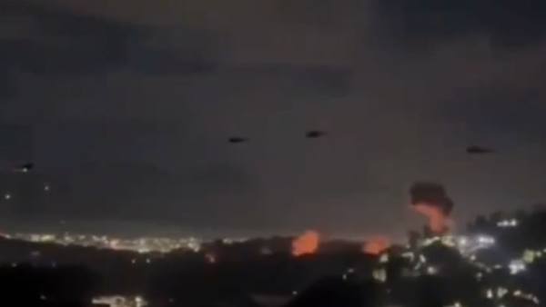 据称是美军直升机飞入加拉加斯的画面