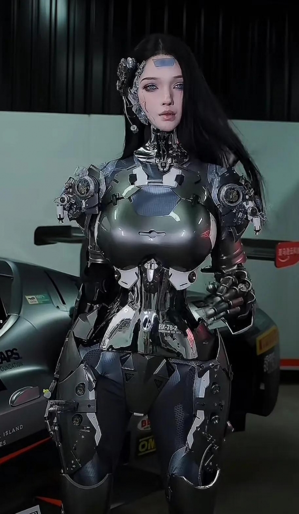 路过的行人,不管是举着灯牌的妹子,还是车里的大哥,都忍不住发出"我靠""这真的机器人啊?"的惊叹。后来这"机械女神"还跑到赛车场地,站在炫酷的赛车旁,那画面,简直就是科幻电影里的场景照进了现实!