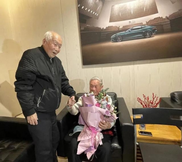 郑德仁和92岁的学生洪友龙(左)