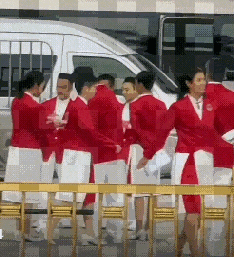 郑钦文则是另一道亮丽的风景线,她在礼堂外与领导们握手言欢,笑容比花儿还灿烂,那份自信和从容,让人不得不爱。听说她全家都特地飞回来捧场,这份荣誉感,杠杠的!
