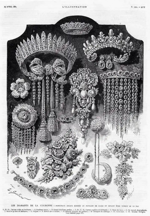 1878年卢浮宫拍卖欧仁妮珍宝的海报,"欧仁妮冠冕"在左上角