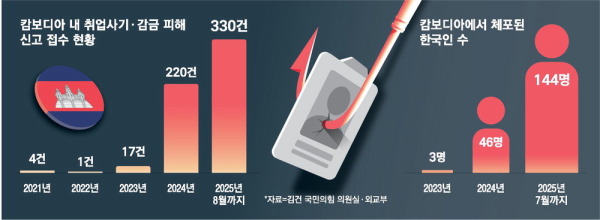最近4年间,在柬埔寨被拘禁的韩国人数显著增加。2024年为46人,今年7月增加到144人。大部分受害者听信"高收入海外就业"的诱惑,前往柬埔寨。