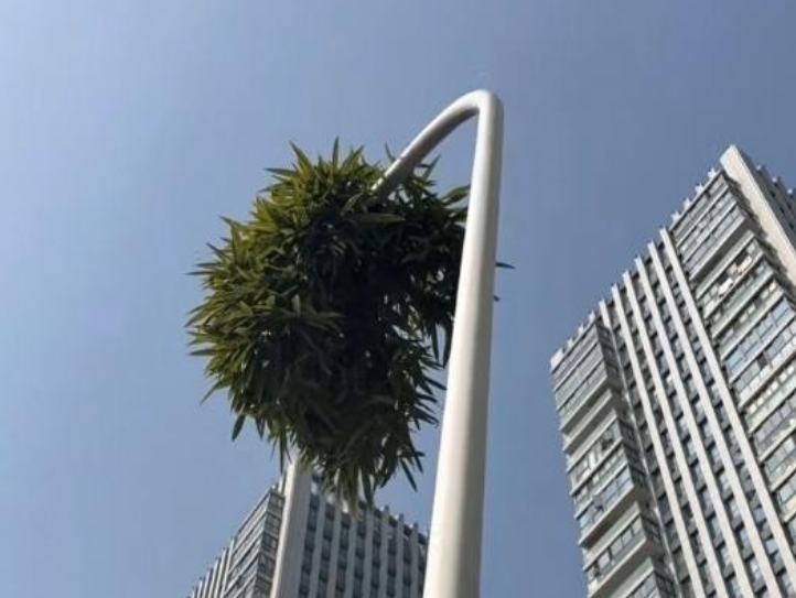 浙江一竹子穿过路灯杆探出头,被誉"竹坚强",成网红打卡点,拍摄者:遛娃时发现的