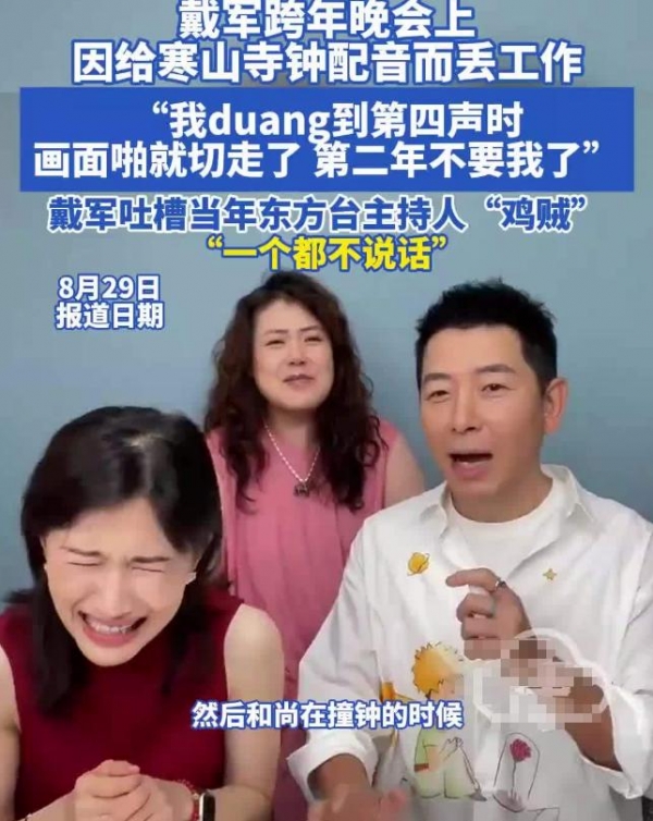 当时零点要切苏州寒山寺撞钟来迎新,但是有点故障,画面里在撞钟但现场突然没声音了,其他主持人都保持沉默,