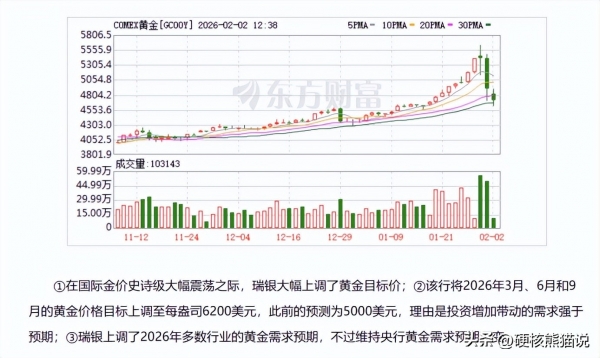 比如瑞银在这个节骨眼上,逆势上调了黄金目标价,从5000美元调到6200美元,要知道,作为全球领先的财富管理机构,管理资产超6万亿美元,瑞银在全球金融体系中可是公认的权威机构