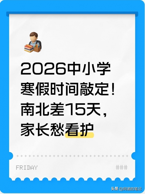 "北方娃放40多天,南方才20多天?""孩子放假我们上班,谁来带?"--进入12月,全国多地教育部门陆续公布2026年中小学寒假安排,南北方假期时长差异、双职工家庭看护难题让不少家长直言"难以接受"。今天就用大白话拆透各地放假安排,分享实用带娃小技巧。