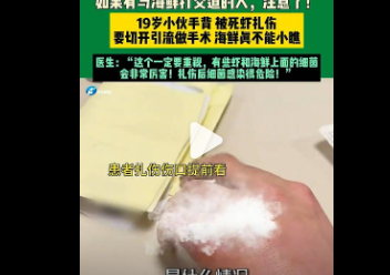 近日,一则海鲜扎伤引发严重感染的案例,为不少市民敲响健康警钟。一名 19 岁小伙在处理死虾时,手背不慎被尖锐部位扎伤,当时伤口细小、出血不多,当事人并未放在心上。