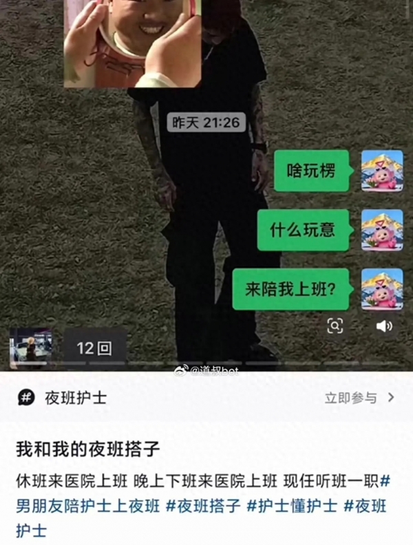 2026年1月3日凌晨,青岛某脑血 管病医院的女护士,晒出男友陪自己值夜班的视频,视频里,纹身男友不仅在护士站搬货、玩手机,还进配药室 帮配药、贴标签、写报告,女护士自己则在一旁拍视频,完全没意识到问题。