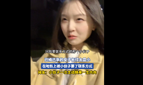 已婚女子因为长得显小,在地铁上被小伙要联系方式