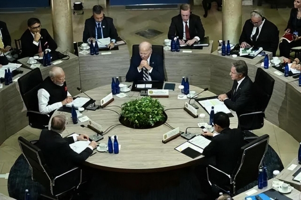 要知道,会议里还坐着澳大利亚总理阿尔巴尼斯、印度总理莫迪、日本首相岸田文雄以及美国国务卿布林肯。同时,拜登的正前方还有一个直播的摄影机。