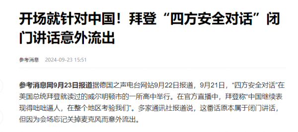不知道是政治失误还是拜登本人老迈昏聩,在四国峰会开场之前,美国官方就发表声明说"这个会议不会针对其他国家"。
