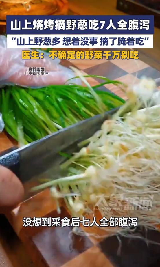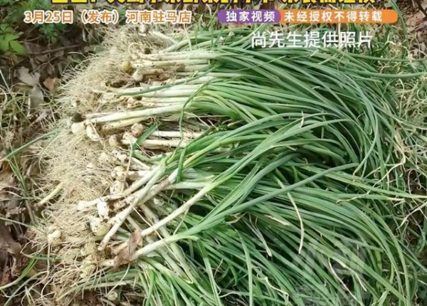 3月22日河南驻马店,尚先生和六个朋友去山上烧烤。到了地方发现没带葱,大家正发愁时,看见山上有大片野葱。尚先生说他刷短视频知道山葱能吃,就摘了些腌着当配菜。七个人吃完都觉得味道不错。