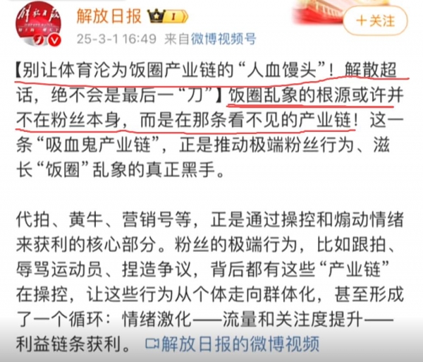 其实早在2025年3月1号的下午16点49分,解放日报就发过声明:饭圈乱象的根源并不在粉丝身上,而是在那条看不见的产业链!这一条'吸血鬼产业链',正是推动极端粉丝行为、滋长'饭圈'乱象的真正黑手。
