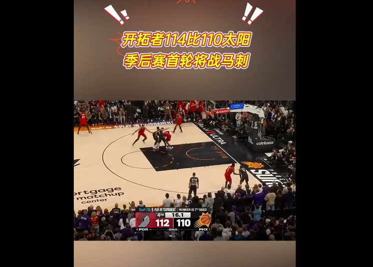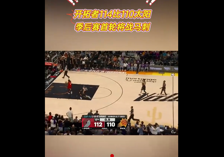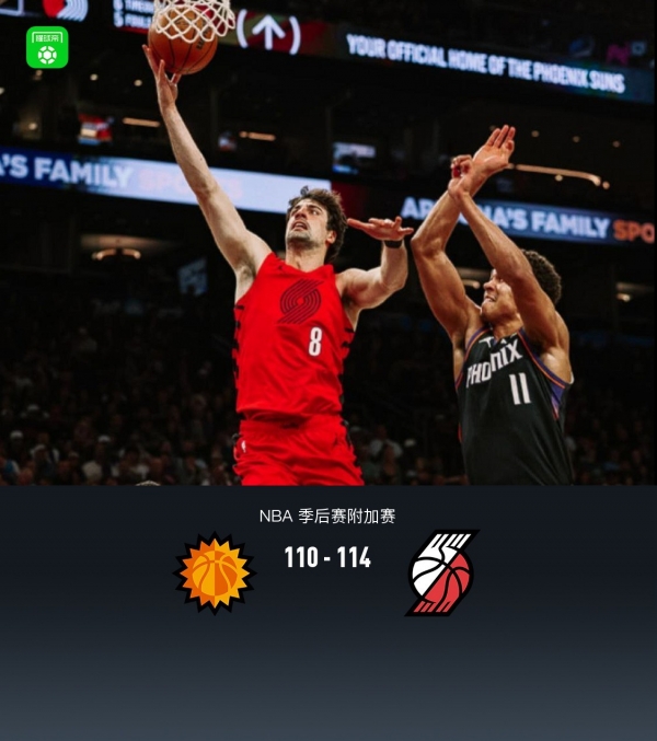 北京时间4月15日NBA 季后赛附加赛,西部第七菲尼克斯太阳对阵西部第八波特兰开拓者。本场杨瀚森随队出战但并未获得出场机会。首节双方紧咬比分,次节开拓者一度领先14分,节末太阳反扑追近比分,半场开拓者65-62太阳,第三节上来开拓者再度领先两位数,随后太阳持续反扑末节一度反超10分,随后阿夫迪亚、格兰特领衔追上比分,最后阶段双方持续冲框交替领先,阿夫迪亚打进关键2+1反超2分,太阳格林绝杀三分不中,格兰特反击暴扣杀死比赛,最终开拓者114-110险胜太阳,开拓者以西部第七晋级季后赛。