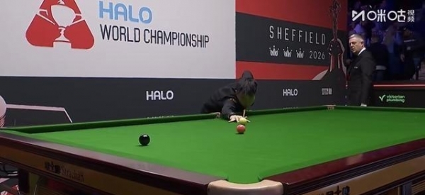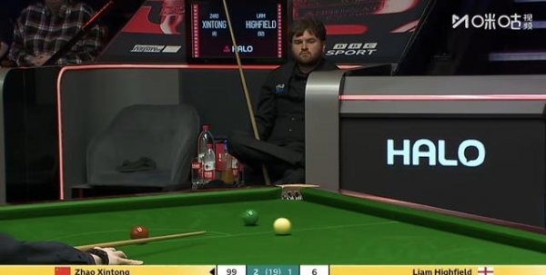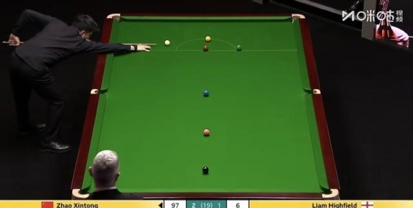 海菲尔德开局长台打进,只拿到1分,赵心童抓住机会,拼进长台,一杆112直接收比赛。