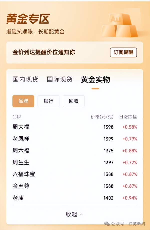 受此影响,近日国内金饰品牌克价也有大幅上涨。记者查询发现,老凤祥金饰克价为1399元,单日上涨11元;周大福金饰为1398元/克,单日上涨8元/克;周生生金饰为1397元/克,单日上涨12元/克。