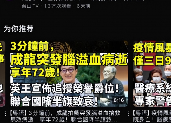 成龙、六小龄童、陈奕迅等等名气大的人,几乎都传出过"身亡"的消息。