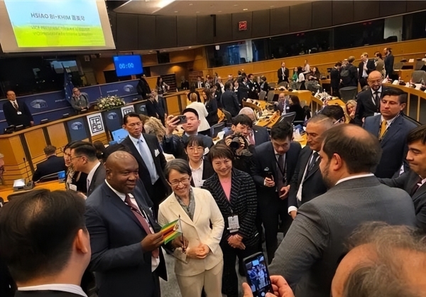 2025年11月7日萧美琴在比利时布鲁塞尔现身欧洲议会大楼,参加所谓"对中政策跨国议会联盟"也就是IPAC的年度峰会,并在那发表讲话。此事来得突然,事先没多少风声,萧美琴由台湾所谓"外交部门"负责人林佳龙陪同,低调进场。