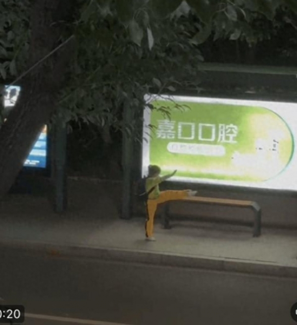 这段意外走红的视频拍摄于嘉善县一个普通的公交站台。傍晚时分,路灯刚刚亮起,背着书包的女孩没有像其他同学那样低头刷手机,而是在站台空地上打起了武术。她的动作行云流水,无论是马步扎桩还是冲拳踢腿,都展现出专业的功底。有网友认出,女孩练习的是嘉兴市非物质文化遗产项目"船拳"的基础套路,这种源于江南水乡的传统武术,如今正通过这样的方式走向世界。
